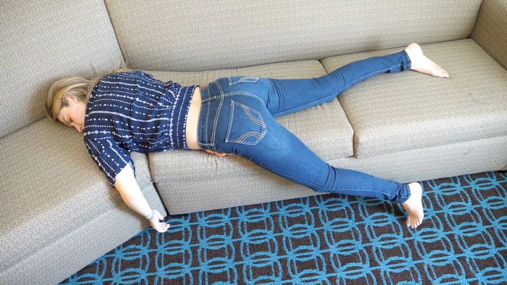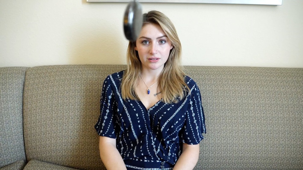 London is experiencing bad anxiety while trying to get through her med school, so she turns to her friend who studies hypnosis for help. He of course wants to help London with her problem, but he can't resist having a little fun with her first. He hypnotizes her and gives her a trigger that puts her to sleep instantly whenever he snaps his fingers. He uses the trigger to drop London quickly in mid conversation, then play with her body while she's out. Needless to say, London becomes slightly irritated by the end of their session. No nudity.